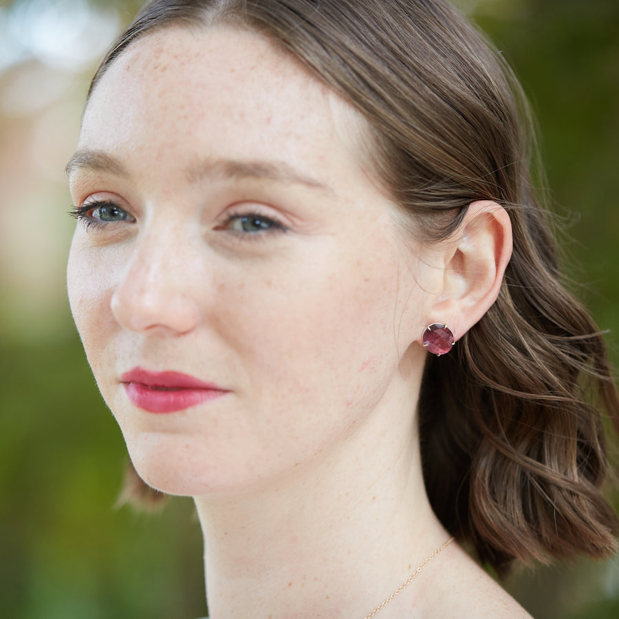 7.4ct tourmaline Vanity studs. Available in 14k gold with bright sterling silver. Approximately 13x15mm.