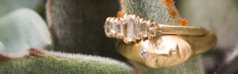 Sea Fog Montana Sapphire Vanity Ring with Diamonds