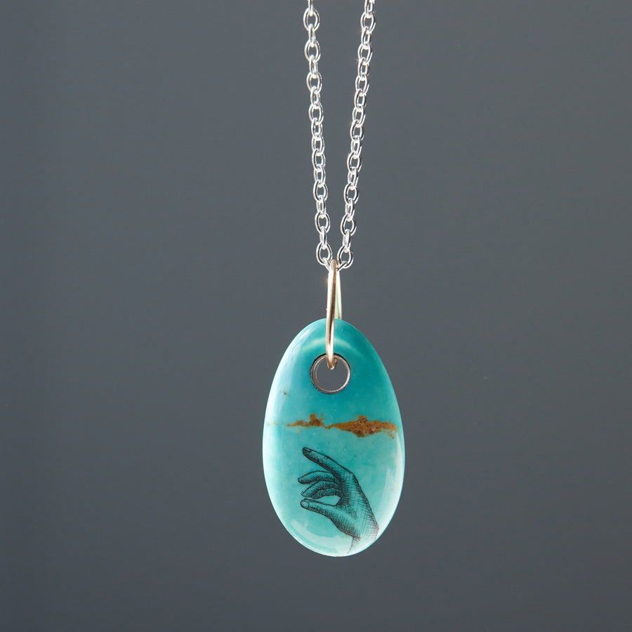Hand of Mystery Kingman Turquoise Scrimshaw Necklace
