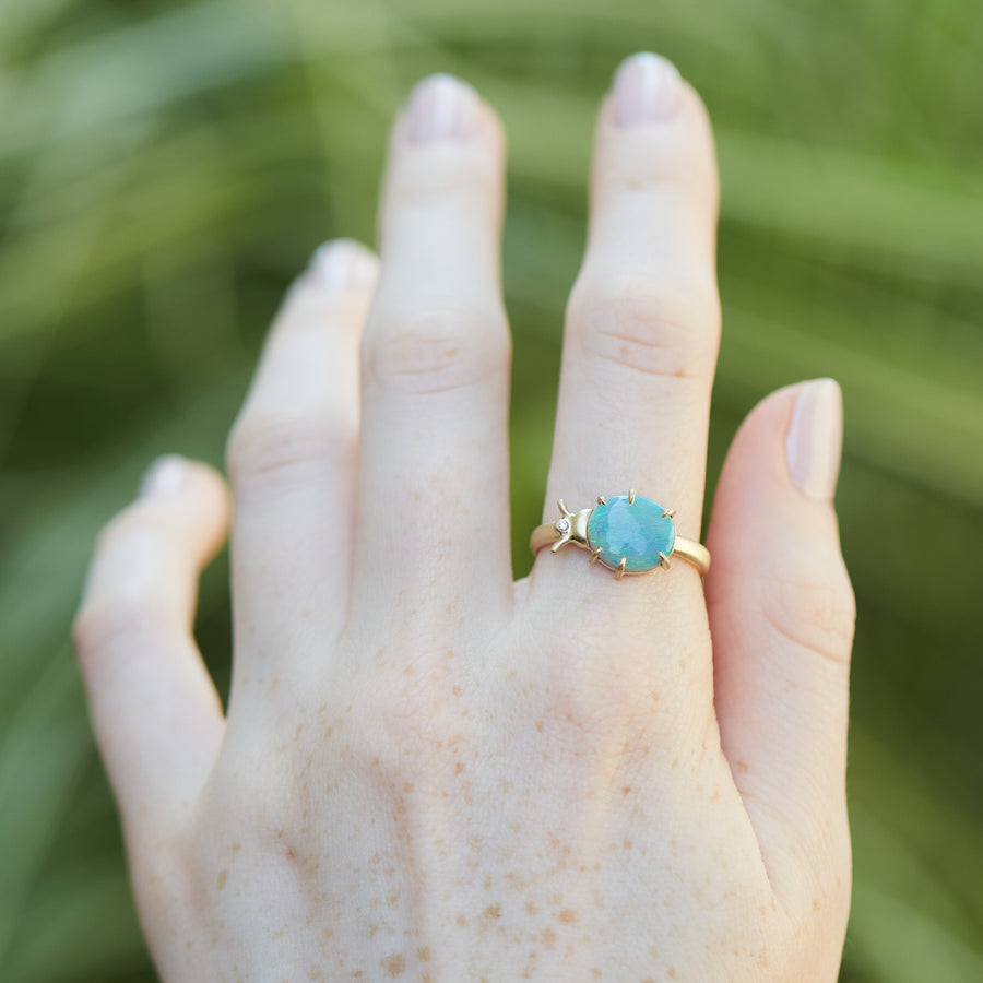 Milkweed Beetle Opal + Diamond Vanity Ring