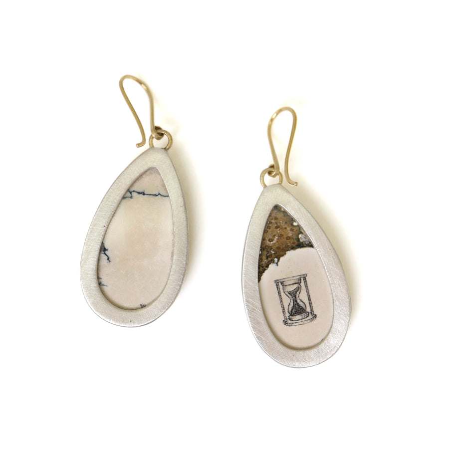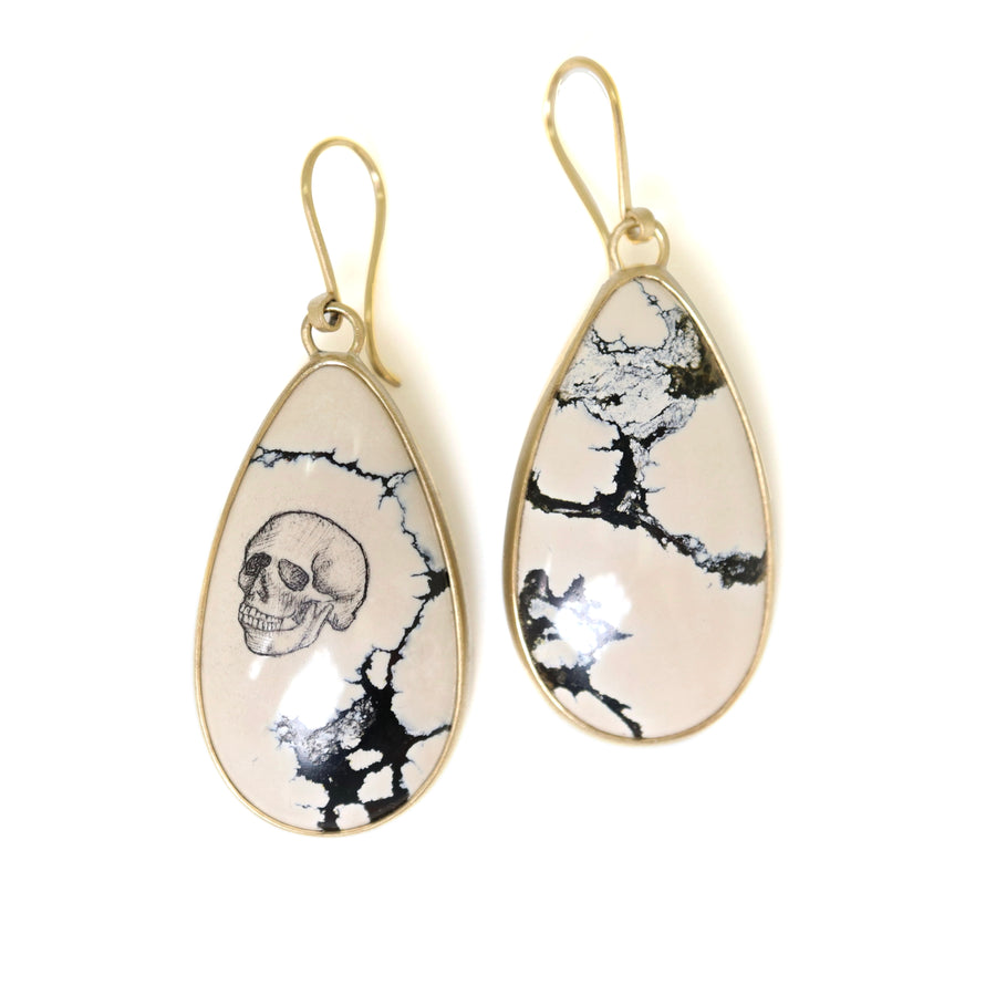 Memento Mori Variscite Scrimshaw Sister Earrings