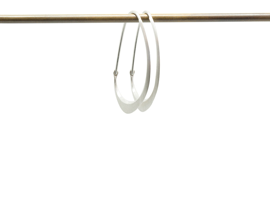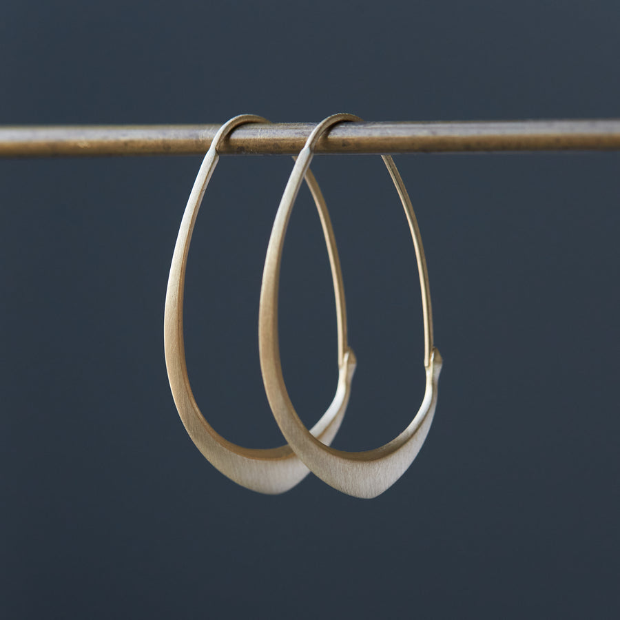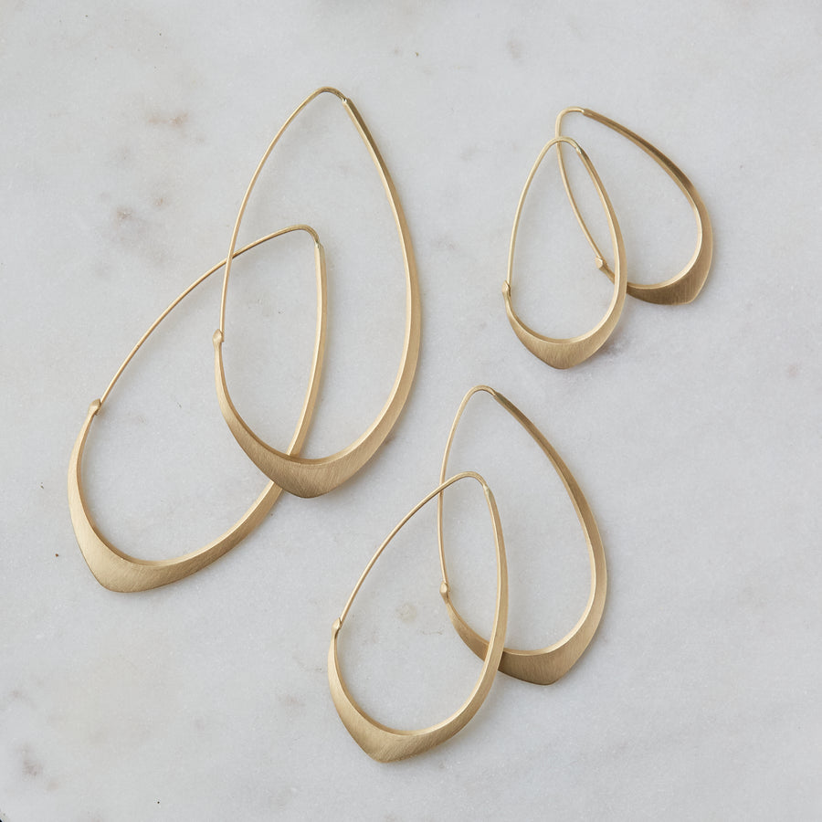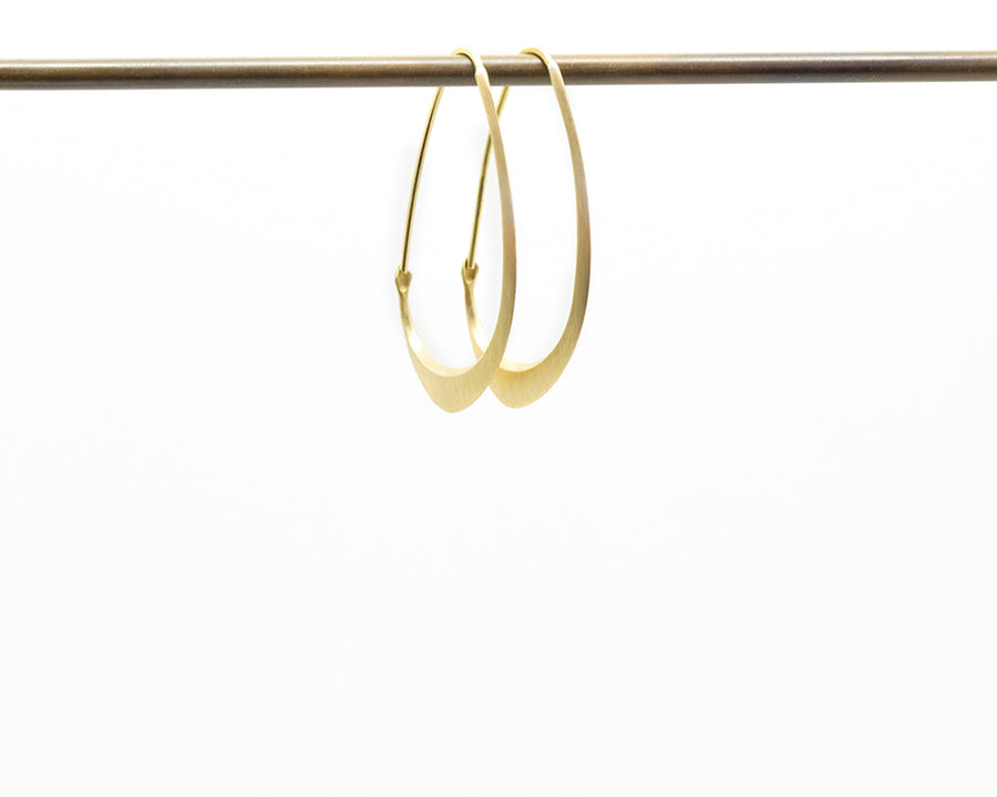 These small, everyday facet hoops create a minimal statement that embraces the luxury of the brushed finish of the metal. The subtle earrings are comprised of a dagger edge and egg-shaped silhouette that together create a sharp twist on the classic hoop.