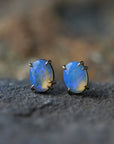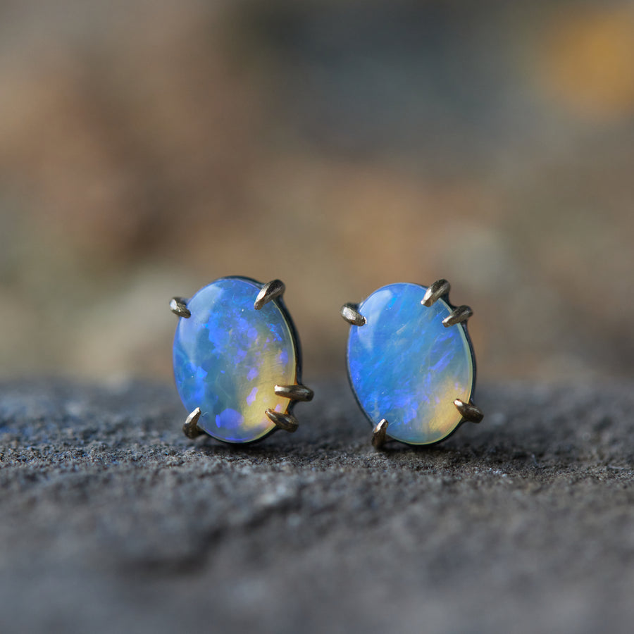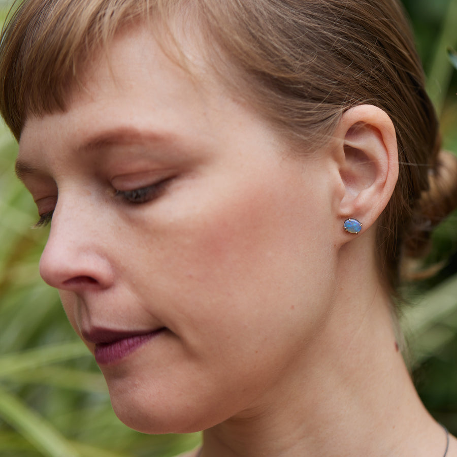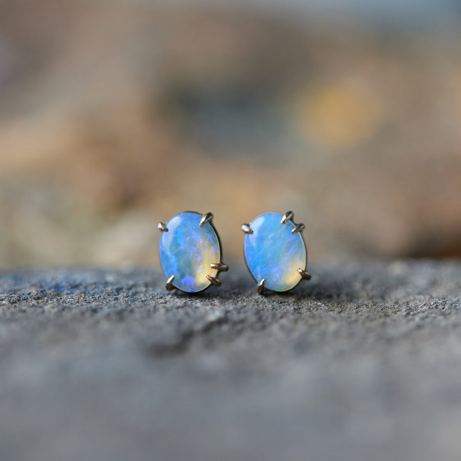 These studs are limited edition. Once sold out, these stud earrings will no longer be available. Please note: each pair of opal studs will vary slightly due to the nature of the gemstone.