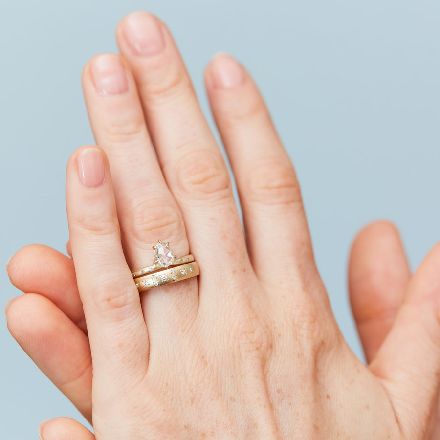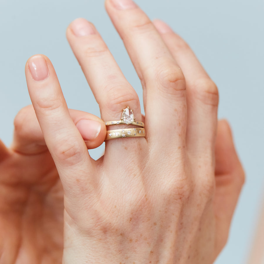 Beloved in the Georgian Era, rose-cut diamonds have found new life in modern day, while honoring their old-world origins. Believed to be named for rosebud petals, HBJ’s repurposed rose cut diamonds are approximately 70 - 100 years old, or older, and personify ethereality. Rose-cut diamonds are flat on the bottom and faceted on the top, which creates more surface area per carat and enhances their gloss and shimmer.