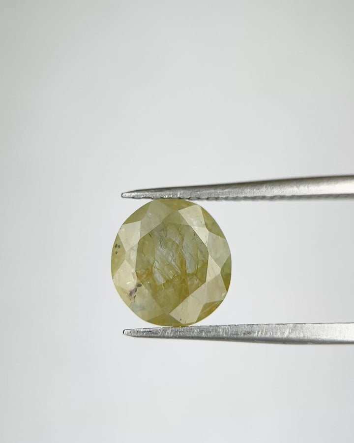 This unique and lovely sapphire is well suited as a barnacle (Ruthie B.), pronged (Vanity) or branch (Waiting) ring. This large stone would also be a lovely necklace. We recommend any yellow gold or platinum.