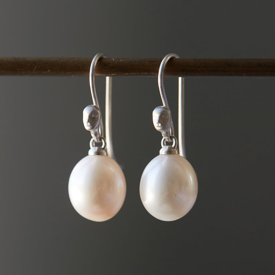 Freshwater pearl Cameo earrings. Approximately 10x14mm. Available in bright silver.