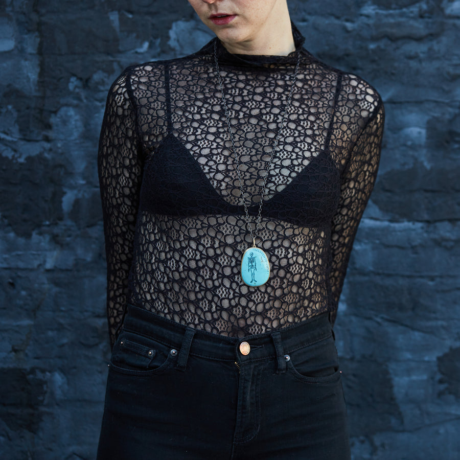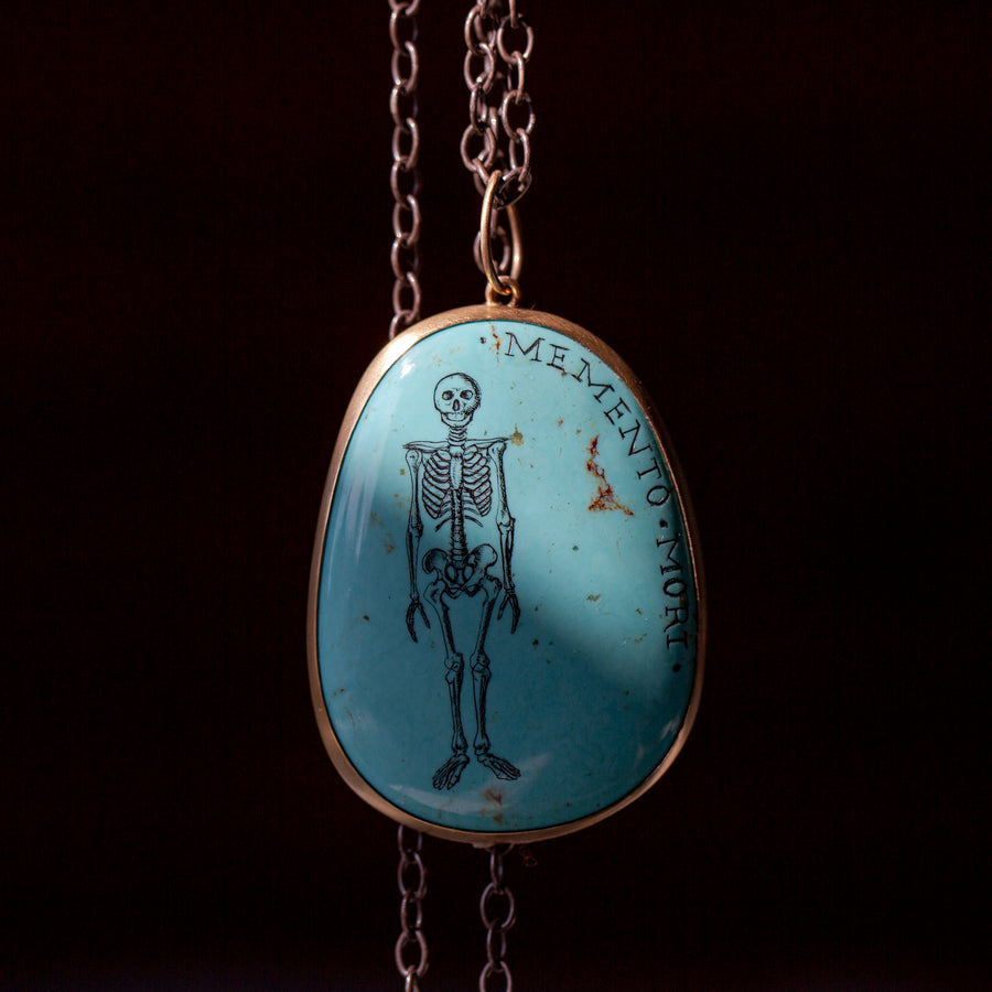 Memento Mori Study #5 Turquoise Scrimshaw Necklace