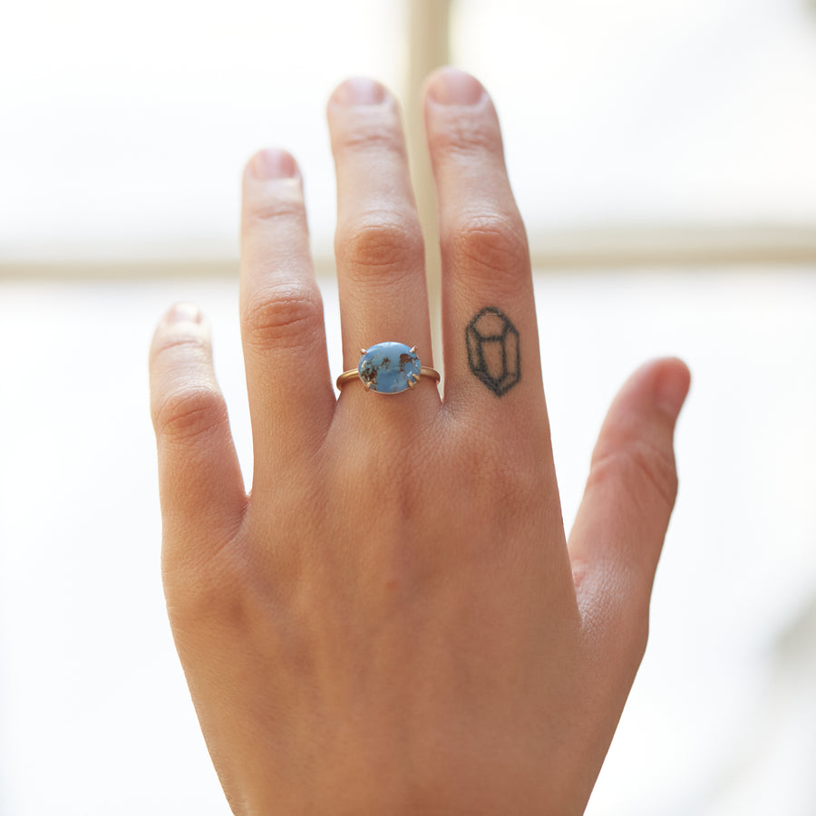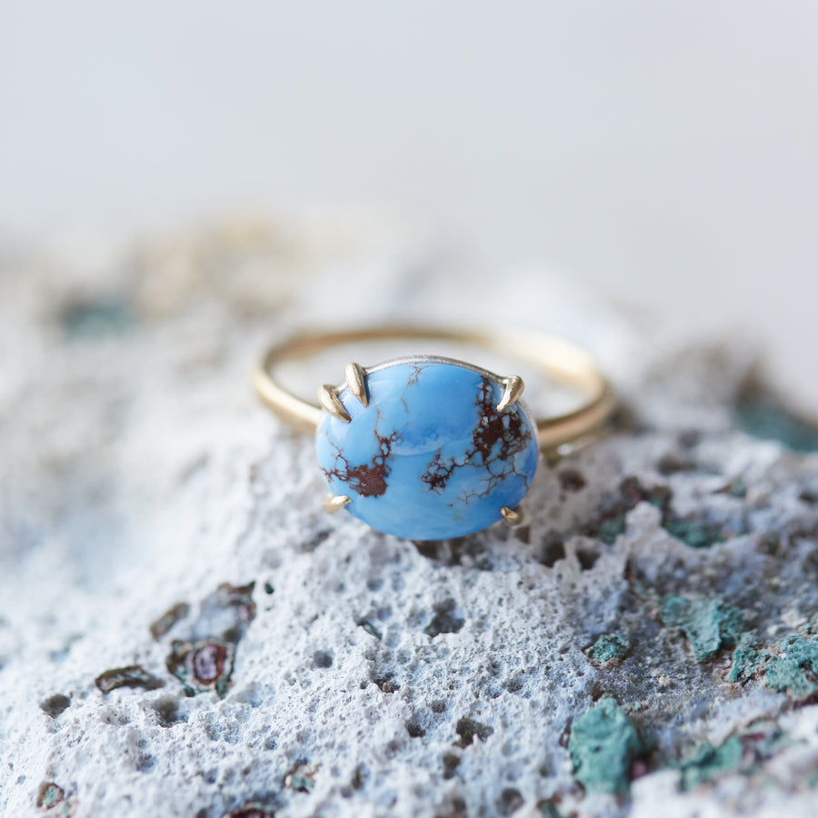 2.9ct Kazakhstan turquoise Vanity ring. Available in 14k gold with bright fine silver. Approximately 11x12mm.