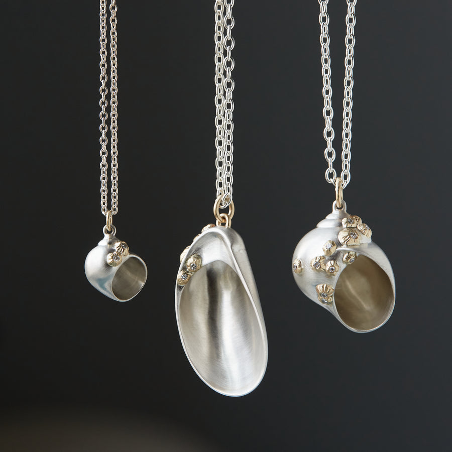 An homage to Hannah's childhood and the nostalgia of her fishing home, this collection comprises gritty nautical-inspired pieces. The collection is named after Hannah's father's fishing vessel, the Ruthie B, which was named after Hannah's mother. Ruthie B. celebrates the mystery and natural peculiarity of the ocean that painted the artist’s childhood. In their weathered island home, Hannah and her six siblings learned how to entertain themselves amidst the chaos that comes with such a large family. The dingy fishing paraphernalia that littered their backyard was a playground of inspiration: raw snapshots of beauty against the clean backdrop of their hometown of Nantucket. These familiar moments inspired her to create beauty of her own. Shop the full Ruthie B. Collection