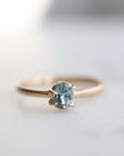 As if carved from daylight, this ring features a pale blue sapphire that glows with airy brilliance. Set in Vanity’s fine prongs, the gem feels suspended- light as air, sharp as glass. Soft in hue but clear in presence, this ring captures the fleeting magic of sky reflected on still water: luminous, fragile, and impossibly serene.